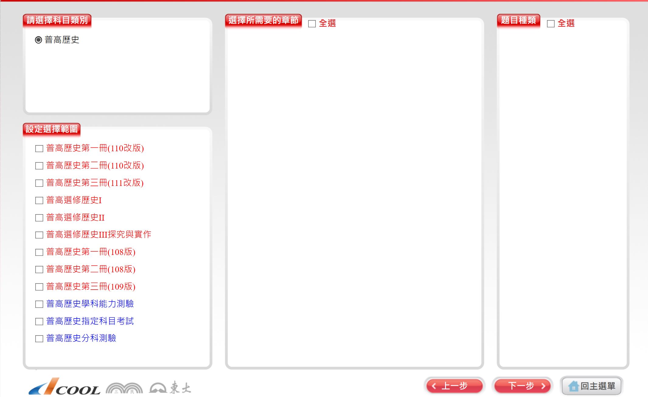 111學年下學期 高中命題光碟 三民版 歷史科(一、二、三、選修I、選修II、選修III探究與實作)(108課綱) 題庫光碟