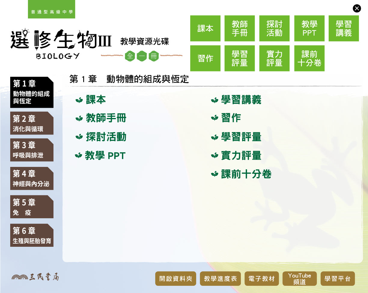 112學年 高中 三民版 選修生物(III) 教學光碟