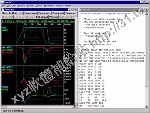 Smash 為法國 Dolphin Integration公司所發展之混合信號兼顧多層次模擬軟體,