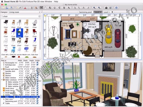 Sweet Home 3D 是一款免費、開源的家裝設計軟件。它能幫您通過二維的家居平面圖來設計和佈
