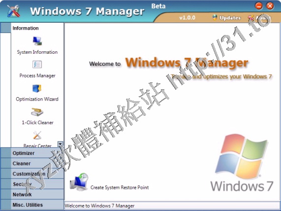 Yamicsoft Windows 7 Manager v3.0.1 英文正式版(Widnows7 總管是優化和設置軟體)