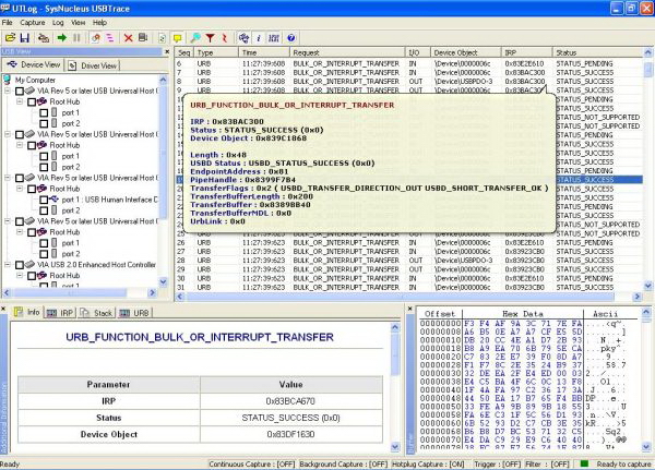 Sysnucleus USBTrace是一款強大而且易用的軟體,用來分析USB總線和與之相連的USB